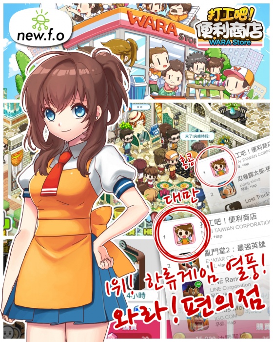 (주)뉴에프오(대표이사, 이호열)는 네이버 웹툰 '와라편의점'을 소재로 만든 편의점 운영 소셜게임 '와라편의점'이 NHN Taiwan(대표이사 강도윤)을 통해 대만, 홍콩, 말레이시아 출시 후 서비스 2일만에 애플 앱스토어 인기게임 1위에 올랐다고 16일 밝혔다.
