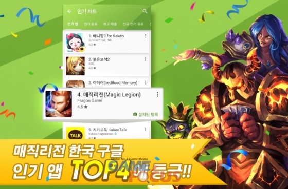 얀드래곤 '매직리전', 구글플레이 인기 앱 4위 달성하며 순항