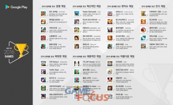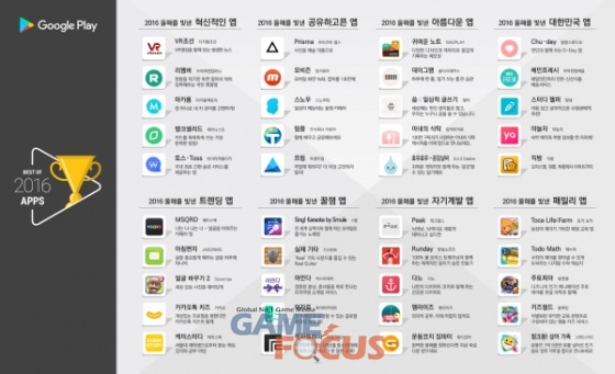 구글코리아가 2016년 한국 구글플레이를 빛낸 베스트 콘텐츠를 발표했다. 앱과 게임 분야에서는 콘텐츠 품질, 사용자 경험, 평점 등을 고려하여 올 한 해 동안 가장 많은 사랑을 받은 앱 40개와 게임 34개를 선정했다. 도서의 경우 가장 높은 인기를 얻은 100개 도서 콘텐츠와 로맨스 소설, 만화 인기 콘텐츠 각 50개, 영화의 경우 최고 인기 콘텐츠 50개를 함께 공개했다.
