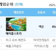이외에도 '전략적 팀 전투'(15위)와 오랜만에 상위권에 진입한 '클래시 오브 클랜'(19위), 스포츠 게임의 대표주자인 '컴투스프로야구V24'(13위)와 'FC모바일'(14위)도 순항 중이다.