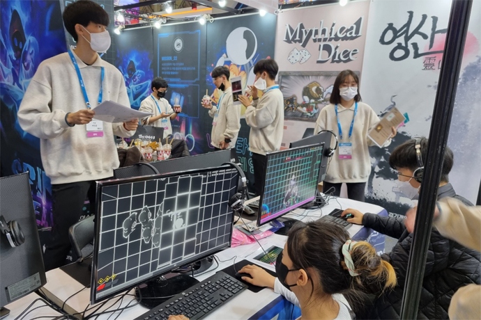 게임 산업의 미래를 주도할 게임 콘텐츠 제작자를 육성하는 경기게임마이스터고등학교가 부산에서 17일부터 개최한 '지스타 2022'에 부스로 참가해 재학생들의 우수한 게...