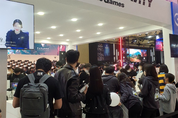 넷마블이 17일부터 개최한 '지스타 2022'에 '나 혼자만 레벨업:ARISE'를 출품한 가운데 인기 스트리머 쫀득, 마젠타, 아구이뽀, 공파리파 등이 넷마블 부스에 등장해 인...