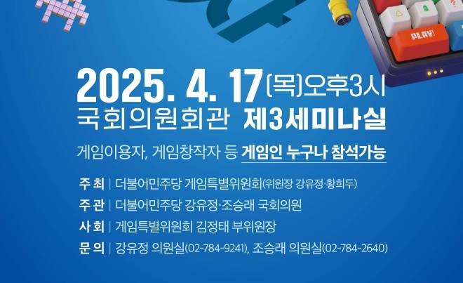 게임인들의 답답한 속을 시원하게 풀어주기 위해 더불어민주당이 소통 행보에 나선다. 더불어민주당 게임특별위원회(이하 게임특위)는 오는 4월 17일(목) 오후 3...