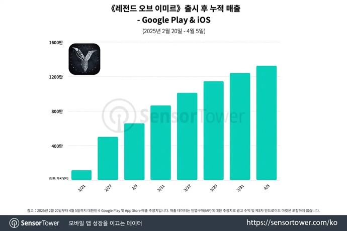 센서타워가 위메이드의 《레전드 오브 이미르》가 출시 45일 만에 누적 다운로드 약 60만 건과 누적 매출 1,500만 달러를 기록하며, MMORPG 시장에 성공적으로 ...