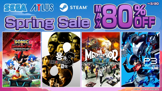 세가퍼블리싱코리아(대표 사이토 고)는 Steam에서 판매 중인 일부 PC용 세가·아틀러스 타이틀을 기간 한정으로 특별 가격에 판매하는 Steam 'Spring Sale'을 개...