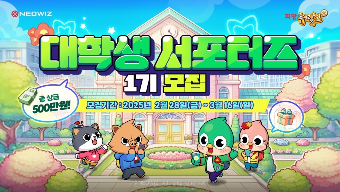 네오위즈(공동대표 김승철, 배태근)는 자사가 서비스 중인 보드게임 ‘피망 뉴맞고’가 대학생 서포터즈 1기를 모집한다고 5일 밝혔다. 이번 대학생 서포터즈는 ...