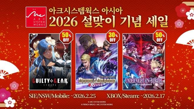 아크시스템웍스 아시아는 PlayStation™Store와 My Nintendo Store, Microsoft Store와 Steam, 그리고 Google Play와 App Store에서 2026 설맞이 기념 세일이 진...