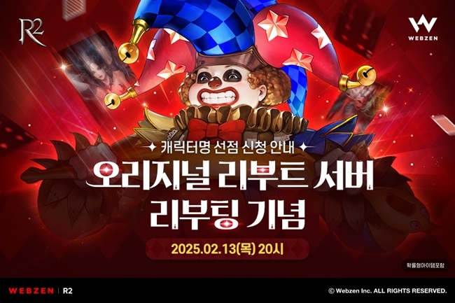 웹젠(대표 김태영)이 PC MMORPG 'R2(Reign of Revolution)'에서 오리지널 리부트 서버 리부팅을 앞두고 사전 이벤트를 진행한다. 웹젠은 13일 저녁부터 17일 0시...