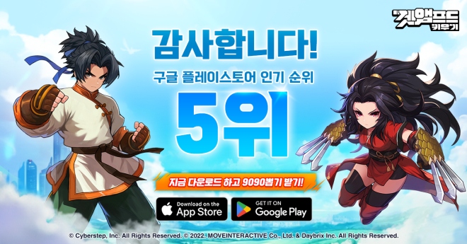 '겟앰프드' 캐릭터를 방치형 RPG로 만나볼 수 있는 무브인터렉티브의 신작 모바일게임 ‘겟앰프드키우기’가 출시 후 5일 만에 구글 플레이 인기 게임 순위 5위...