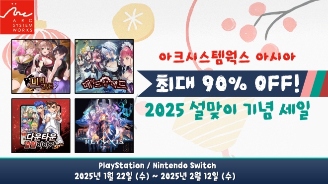 아크시스템웍스 아시아는 PlayStation™Store와 My Nintendo Store에서 2025 설맞이 기념 세일이 진행된다고 발표했다. '다운타운 열혈이야기 SP'를 비롯하여 다...