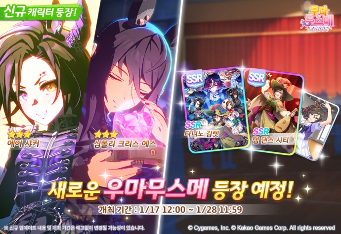 카카오게임즈(대표 한상우)는 17일, 사이게임즈(대표 와타나베 코이치)가 개발한 인기 게임 ‘우마무스메 프리티 더비’에 신규 의상 육성 우마무스메와 스토리 ...