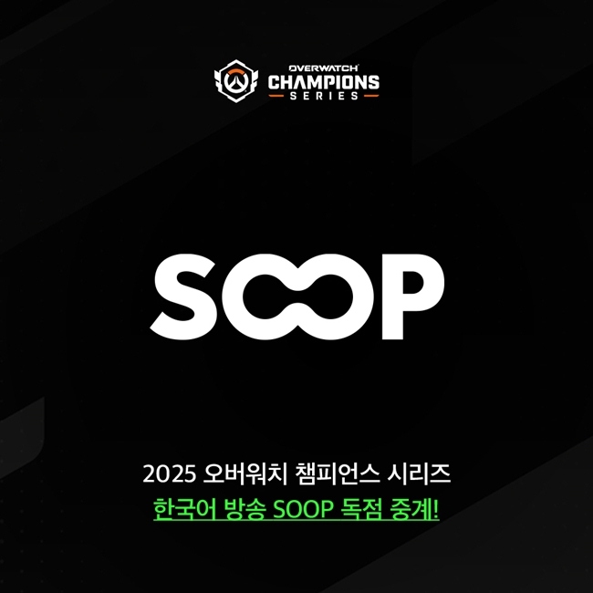 2025년 진행되는 글로벌 '오버워치' 이스포츠 대회의 한국어 중계를 SOOP에서 단독으로 만나볼 수 있다. SOOP은 '2025 오버워치 챔피언스 시리즈(Overwatch Cham...