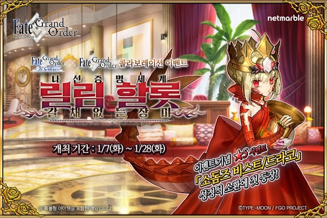 넷마블(대표 권영식, 김병규)이 모바일 RPG '페이트/그랜드 오더'에서 '페이트/그랜드 오더 아케이드'(Fate/Grand Order Arcade)와의 콜라보레이션 이벤트를 1월...