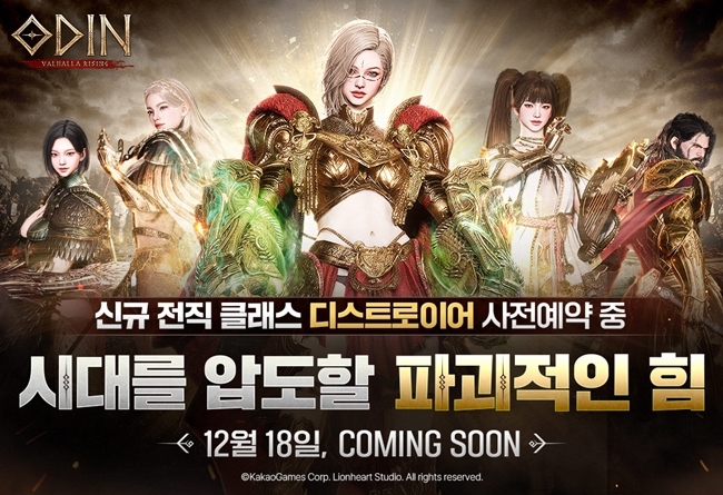 카카오게임즈(대표 한상우)가 11일, 라이온하트 스튜디오(의장 김재영)가 개발한 대작 MMORPG '오딘: 발할라 라이징(이하 '오딘')'의 신규 전직 클래스 '디스트...