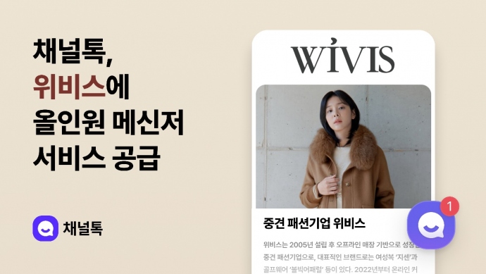 (주)채널코퍼레이션(대표 최시원)은 패션기업 (주)위비스(대표 도상현)의 공식 온라인몰 ‘위비스몰’이 올인원 AI 비즈니스 메신저 ‘채널톡’ 도입해 단골 고...