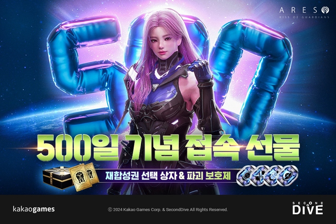 카카오게임즈(대표 한상우)는 MMORPG '아레스 : 라이즈 오브 가디언즈(Ares : Rise Of Guardians, 이하 아레스)'의 서비스 500일을 맞아 대규모 게임내 이벤트를...