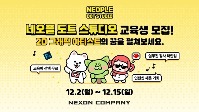 네오플(대표 윤명진)이 15일까지 채용 연계형 교육 프로그램 '네오플 도트 스튜디오(Neople Dot Studio, 이하 NDS)'의 교육생을 모집한다고 밝혔다. NDS는 네오...