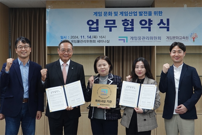 게임물관리위원회(이하 ‘게임위’, 위원장 서태건)는 14일(목) 오후 4시 게임위 세미나실에서 게임문화교육원(원장 김현경)과 게임 문화 및 산업 발전을 위한 ...