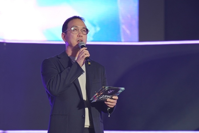 컴투스 송병준 의장이 'SWC2024' 월드 파이널 결승전 시상식에 참석해 전 세계 '서머너즈 워: 천공의 아레나(이하 서머너즈 워') 팬들에게 감사의 메시지를 전했...