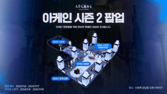 라이엇 게임즈가 넷플릭스 독점 애니메이션 시리즈 '아케인' 시즌 2(Arcane Season Two) 공개를 하루 앞두고 특별 팝업을 운영한다. '아케인' 시즌 2 특별 팝업...