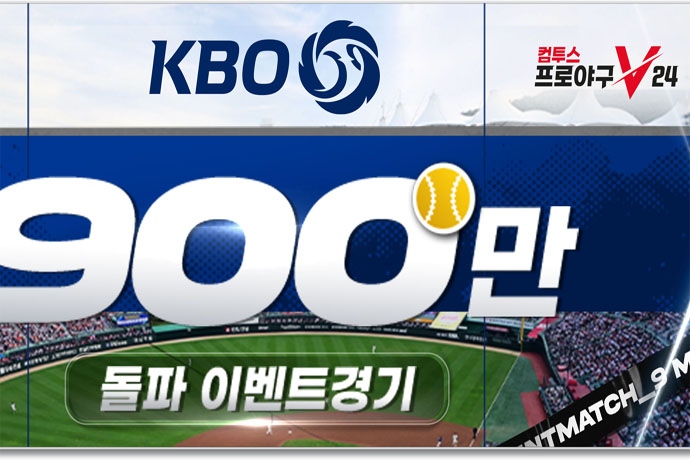 컴투스(대표 남재관)가 리얼 야구 게임 ‘컴투스프로야구V24’(이하 컴프야V24)에 KBO리그 900만 관중 돌파 기념 이벤트를 실시한다. 이번 이벤트는 KBO리그 역...