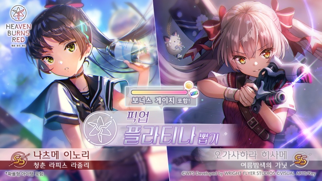 라이트 플라이어 스튜디오와 Key가 '헤븐 번즈 레드'의 신규 의상이 등장하는 'SS 오가사하라 히사메/나츠메 이노리 등장! 픽업 플라티나 뽑기'를 2024년 9월 6...