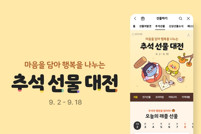 카카오(대표이사 정신아)의 ‘카카오톡 선물하기(이하 쇼핑하기)’는 한가위를 앞두고 소중한 사람들에게 마음을 전하고자 하는 이용자들을 위해 혜택 가득한 ‘...