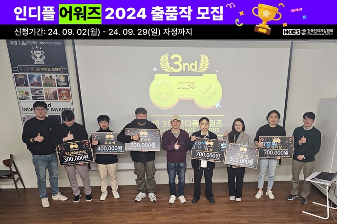 사단법인 한국인디게임협회가 주관/주최하는 국내 유일의 인디게임 시상식인 <인디플어워즈 2024> 시상 행사를 위해 후보작을 모집한다고 밝혔다. 올해로 ...