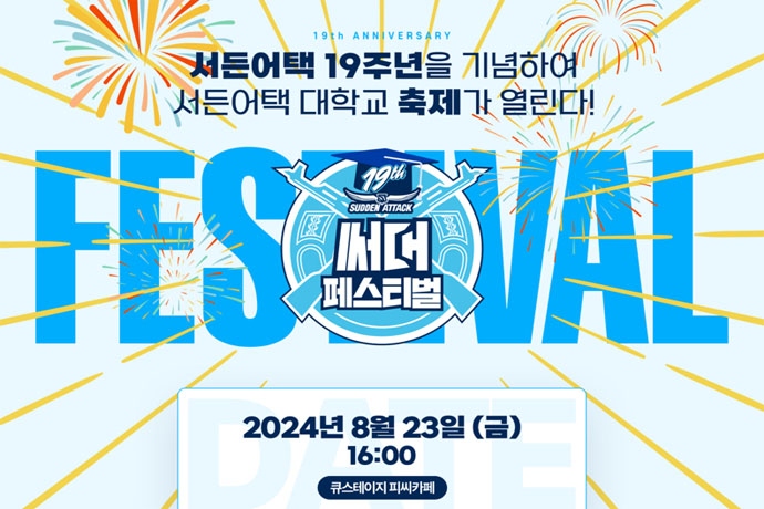 (주)넥슨(공동 대표 김정욱∙강대현)은 자사 인기 온라인 FPS 게임 ‘서든어택’의 서비스 19주년 기념 행사 ‘써대 페스티벌’을 23일 진행한다고 22일 밝혔다....