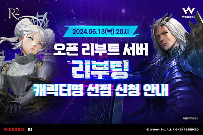 웹젠(대표 김태영,)이 PC MMORPG 'R2(Reign of Revolution)'에서 오픈 리부트 서버 리부팅 기념 '캐릭터명 선점 신청' 이벤트를 마련했다. R2의 오픈 리부트 서...