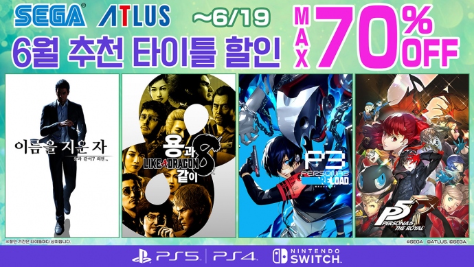 세가퍼블리싱코리아(대표 사이토 고)는 PlayStation™Store 및 닌텐도 e숍에서 판매 중인 일부 PlayStation®5/PlayStation®4/Nintendo Switch™용 타이틀을 기...