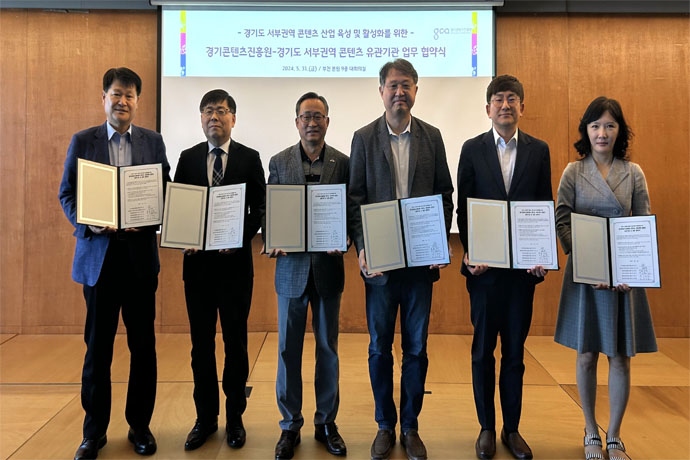 경기콘텐츠진흥원(원장 탁용석, 이하 경콘진)은 경기도 서부권역 5개 콘텐츠 유관기관과 경기도 서부권역 콘텐츠 산업 육성 및 활성화를 추진하기 위한 업무협약...