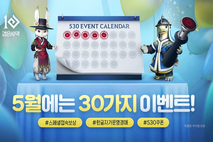 펄어비스(대표 허진영)가 검은사막 직접 서비스 5주년 기념 ‘530 이벤트’를 본격적으로 시작한다. 검은사막은 2019년 5월 30일 국내 직접 서비스를 시작했다. ...