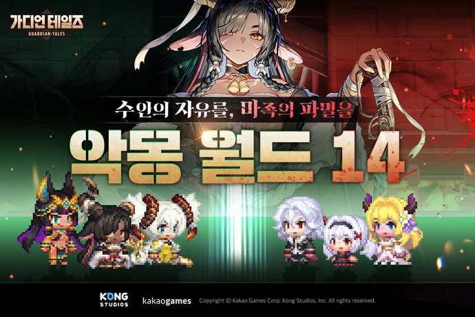 (주)카카오게임즈(대표 한상우)는 3일, 미국 개발사 콩 스튜디오(대표 원(Won))가 개발한 모바일 RPG '가디언 테일즈'에 신규 악몽 월드 14를 업데이트했다고 밝...