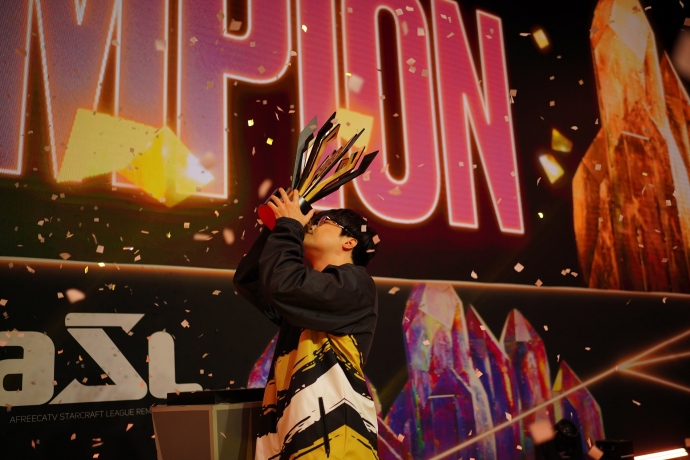 ‘철벽’ 김민철이 ASL 2회 연속 우승에 성공하며 4번째 ASL 2회 우승자로 등극했다. SOOP은 4월 27일(토) 서울 잠실 ‘비타500 콜로세움’에서 펼쳐진 '아프리...
