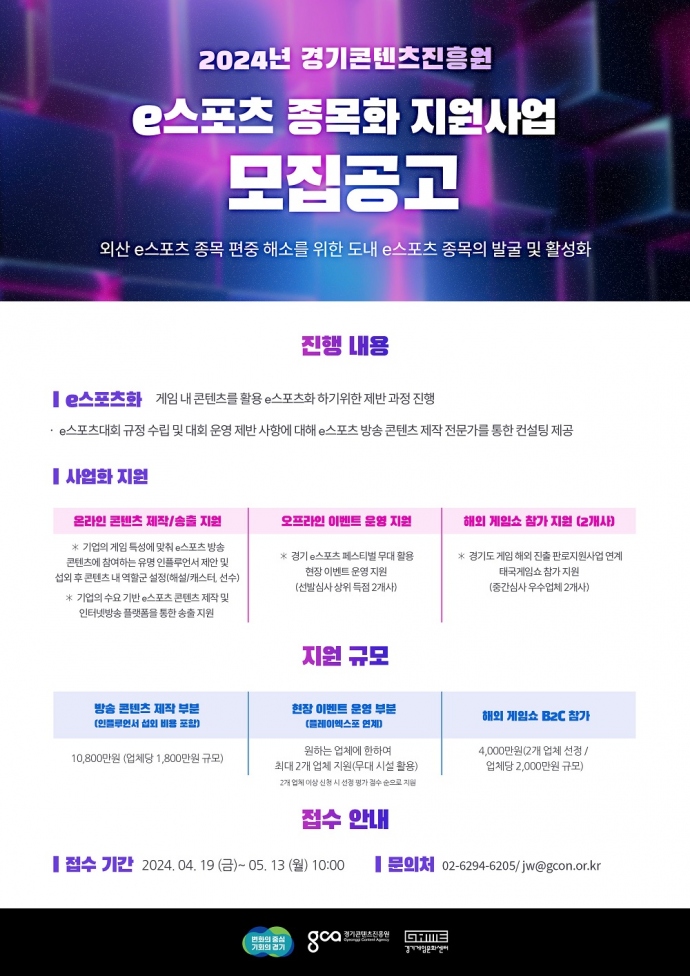 경기콘텐츠진흥원(원장 탁용석, 이하 경콘진)은 새로운 e(이)스포츠 종목으로 성공 가능성이 높은 게임을 발굴하고 종목화 과정을 지원하는 '경기 e스포츠 종목...
