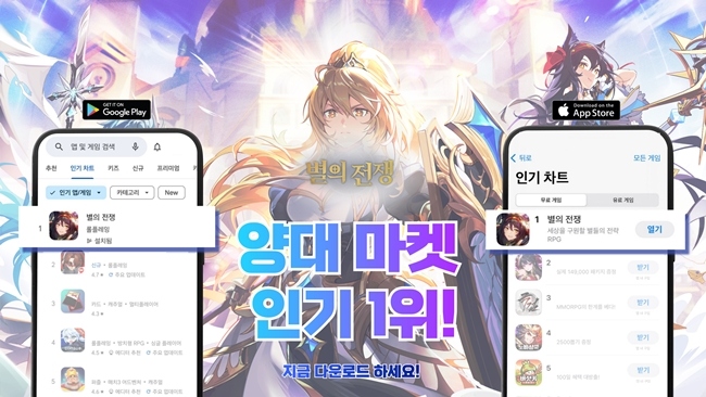 모비데이즈의 글로벌 모바일 임 서비스 전문 자회사 모비게임즈가 출시한 '별의 전쟁'이 22일 오후 2시경 앱스토어 게임 인기차트 1위를 달성해, 21일 구글플레...