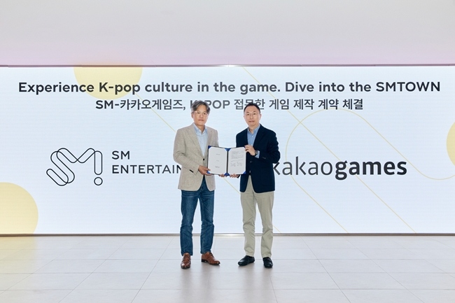 카카오게임즈(대표 한상우)와 엔터테인먼트사 SM엔터테인먼트(공동대표 장철혁, 탁영준)가 16일, 최초로 IP(Intellectual Property, 지식재산권) 라이선스 계약...