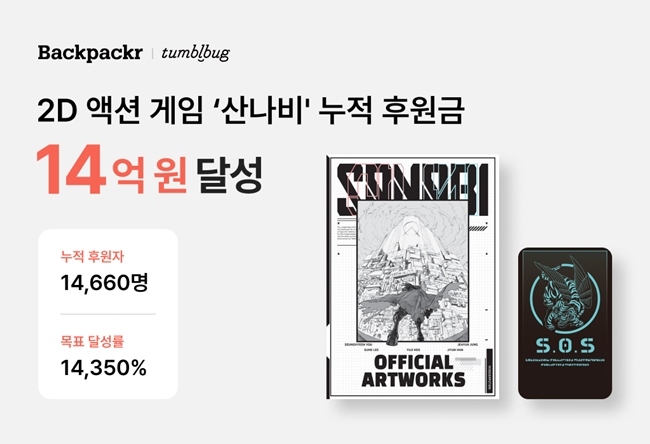 백패커(대표 김동환)가 운영하는 크라우드 펀딩 플랫폼 텀블벅이 네오위즈의 2D 액션게임 '산나비(SANABI)'의 한정판 굿즈 펀딩 프로젝트가 누적 후원금 14억원...