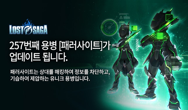 밸로프(대표 신재명)에서 서비스하는 대전 액션 온라인 게임 '로스트사가'가 오늘(20일) 신규 유니크 용병 '패러사이트'를 공개했다. '패러사이트' 는 해킹으로 ...