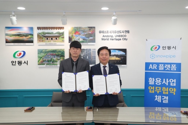 스노우파이프(대표 김정익)는 지난 19일 경상북도 안동시(시장 권기창)에 위치한 시장실에서 글로벌AR플랫폼을 활용한 국내외 관광객 유치 활성화를 위한 업무협...