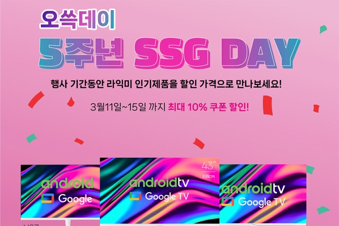 TV·모니터·냉장고·와인셀러 등 가전 전문 브랜드 라익미는 SSG 창립 5주년을 기념해 진행되는 대규모 세일 페스타 '오쓱 Days'에 참여, 인기 높은 라익미의 ...