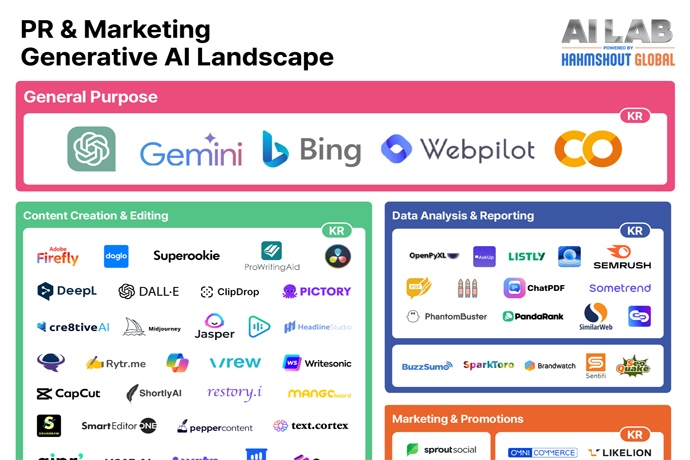 홍보 & 마케팅 회사 (주)함샤우트 글로벌이 PR & 마케팅 분야 종사자들을 위한 생성형 AI 솔루션을 정리한 'PR & 마케팅 생성형 AI 지형도 1.0'을 ...