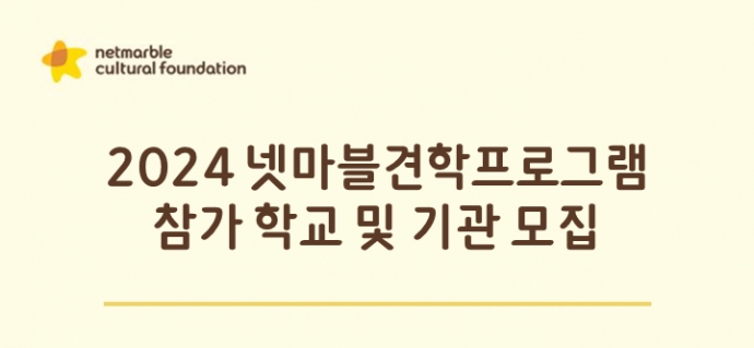 넷마블문화재단(이사장 방준혁)은 ‘2024 넷마블견학프로그램’ 참가자를 모집한다고 6일 밝혔다. 넷마블견학프로그램은 게임 진로에 관심 있는 중학생 이상의 ...