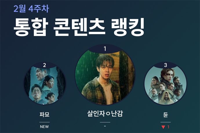 콘텐츠 커뮤니티 키노라이츠가 2월 4주 차(2/19~2/25) 통합 콘텐츠 랭킹을 공개했다. 2월 4주 차 통합 콘텐츠 랭킹 1위를 차지한 넷플릭스 시리즈 [살인자ㅇ난감...