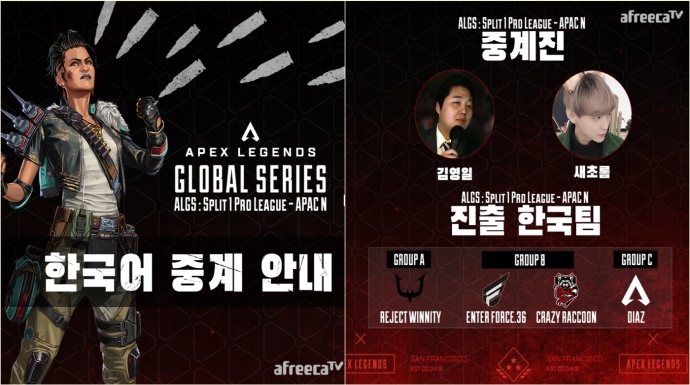 아프리카TV가 ‘에이펙스 레전드’로 펼쳐지는 e스포츠 대회 ‘ALGS 2024 Split 1 Pro League - APAC North’를 한국어로 독점 중계한다. 아프리카TV는 2월 4일...