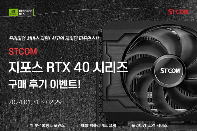(주)에스티컴퓨터(이하, STCOM)는 유통사인 (주)에스티컴퓨터(대표 서희문, 이하 STCOM)는 RTX 40 슈퍼 시리즈 출시 기념 구매 후기 작성 행사를 진행한다고 밝...