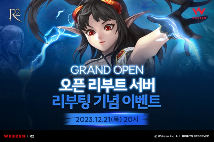 웹젠(대표 김태영)이 PC MMORPG 'R2(Reign of Revolution)’에서 오픈 리부트 서버 리부팅 기념 이벤트를 마련했다. 웹젠은 어제(12월 21일) 오후 8시에 ‘R2’...