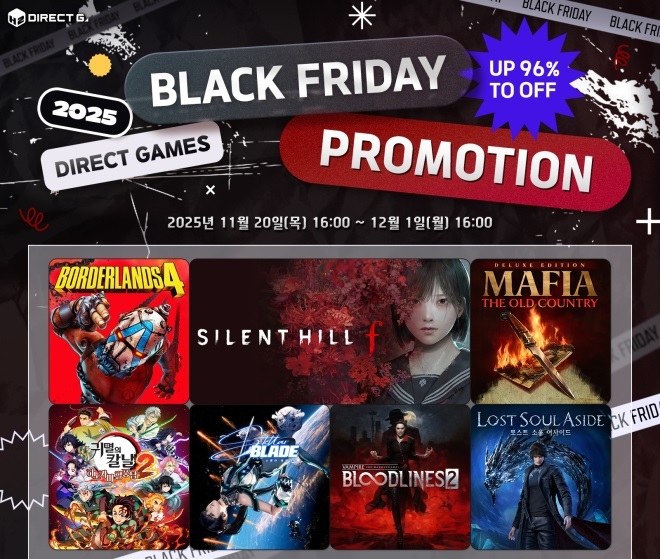 ㈜에이치투 인터렉티브(이하 H2 INTERACTIVE, 대표 허준하)는 자사의 디지털 유통 서비스인 다이렉트 게임즈에서 오늘(11월 20일)부터 블랙 프라이데이 프로모션...