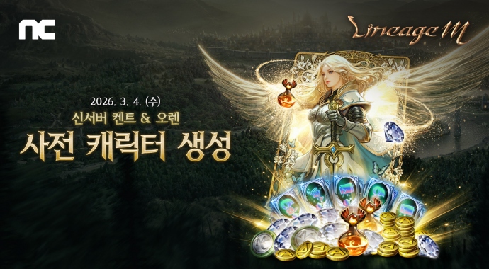 (주)엔씨소프트(공동대표 김택진, 박병무 이하 엔씨(NC))의 MMORPG(다중접속역할수행게임) 리니지M이 4일 ‘ContiNew’ 업데이트의 사전 캐릭터 생성을 시작한다...